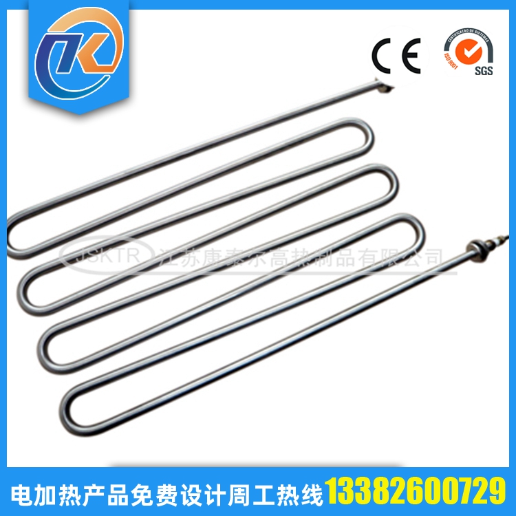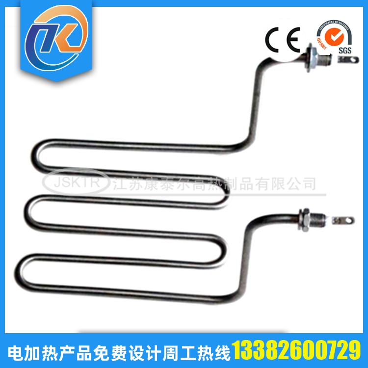 法蘭電加熱管(也稱插入式電加熱器):是采用U型電熱管,依據(jù)加熱的空氣或者水油等來設(shè)計(jì),按照功率配置要求裝配在法蘭蓋上,插入需加熱物料中,當(dāng)介質(zhì)溫度達(dá)到工藝要求時(shí),持續(xù)保持加熱;而當(dāng)發(fā)熱元件超溫或低液位時(shí),發(fā)熱元件的聯(lián)鎖保護(hù)裝置立即切斷加熱電源避免發(fā)熱元件燒壞,延長(zhǎng)使用壽命。 應(yīng)用范圍 法蘭電熱管訂購(gòu)參數(shù): 1.電壓,功率; 2.材質(zhì); 3.管徑; 4.長(zhǎng)度; 5.數(shù)量; 6.加熱什么,長(zhǎng)期溫度多少; 7.加熱管類型;