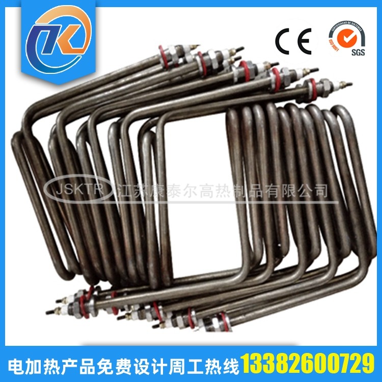 法蘭電加熱管(也稱(chēng)插入式電加熱器):是采用U型電熱管,依據(jù)加熱的空氣或者水油等來(lái)設(shè)計(jì),按照功率配置要求裝配在法蘭蓋上,插入需加熱物料中,當(dāng)介質(zhì)溫度達(dá)到工藝要求時(shí),持續(xù)保持加熱;而當(dāng)發(fā)熱元件超溫或低液位時(shí),發(fā)熱元件的聯(lián)鎖保護(hù)裝置立即切斷加熱電源避免發(fā)熱元件燒壞,延長(zhǎng)使用壽命。 應(yīng)用范圍 法蘭電熱管訂購(gòu)參數(shù): 1.電壓,功率; 2.材質(zhì); 3.管徑; 4.長(zhǎng)度; 5.數(shù)量; 6.加熱什么,長(zhǎng)期溫度多少; 7.加熱管類(lèi)型;